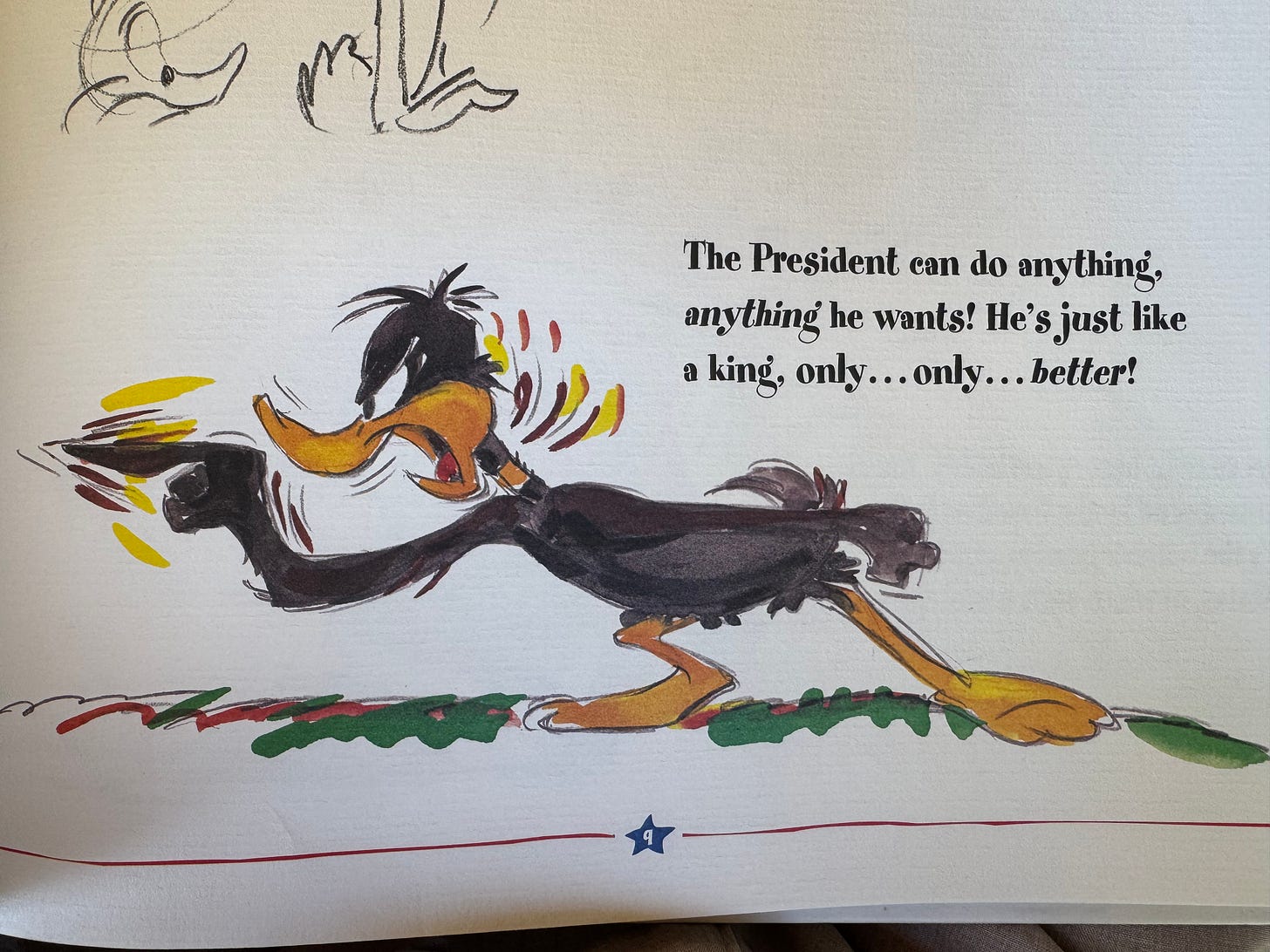 Daffy: “That’s ridiculous! The president can do anything, anything he wants? He’s just like a king only… Only better.”