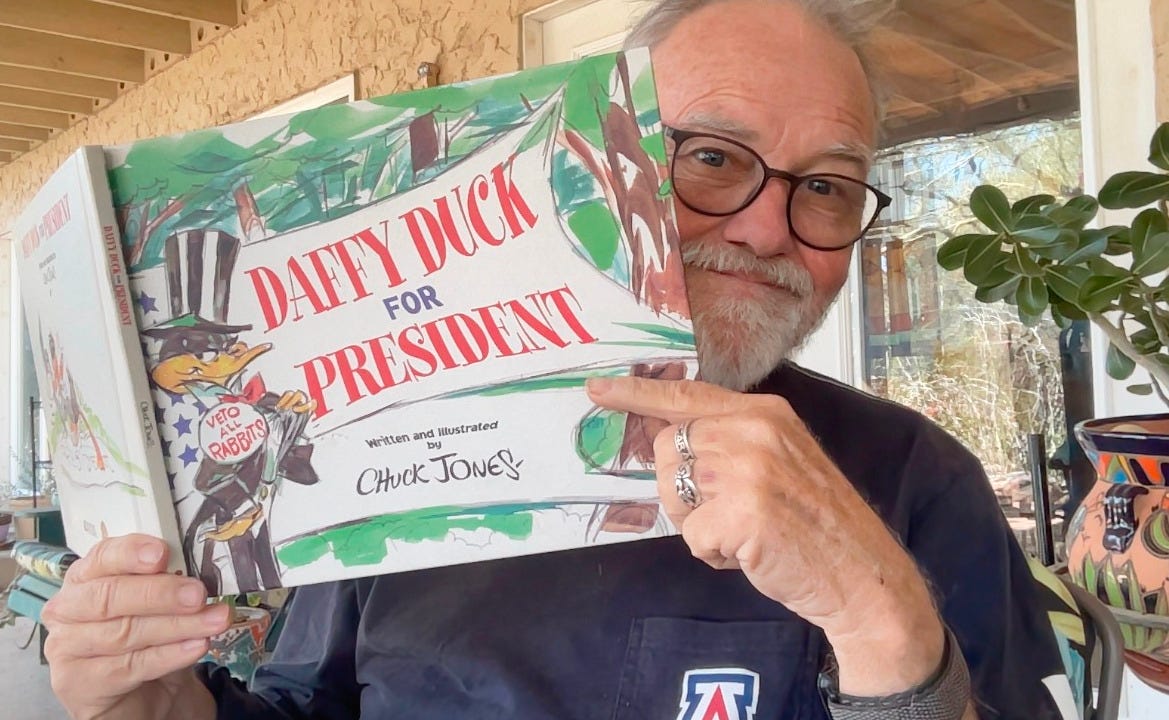 Intended to be a civics lesson for kids when it was published in 1997, “Daffy Duck for President”, is today a compelling pro-democracy anti-fascist screed more timely than “Twenty Lessons on Tyranny” or “Democracy Awakening”. It was written by the prescient prophet Chuck Jones, and drawn by the same gifted pencil and pen pusher, Chuck Jones, a talent who is in my view, the greatest animator, cartoon producer and cartoonist of the 20th Century.