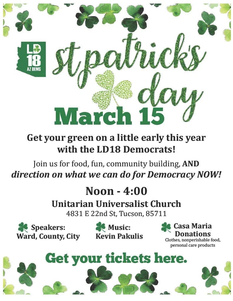 Get your tickets for the famous L.D. 18 St. Patrick’s Day Luncheon on this coming Saturday from noon to 4 at the Unitarian Universalist Church at 4831 E 22nd St: https:
