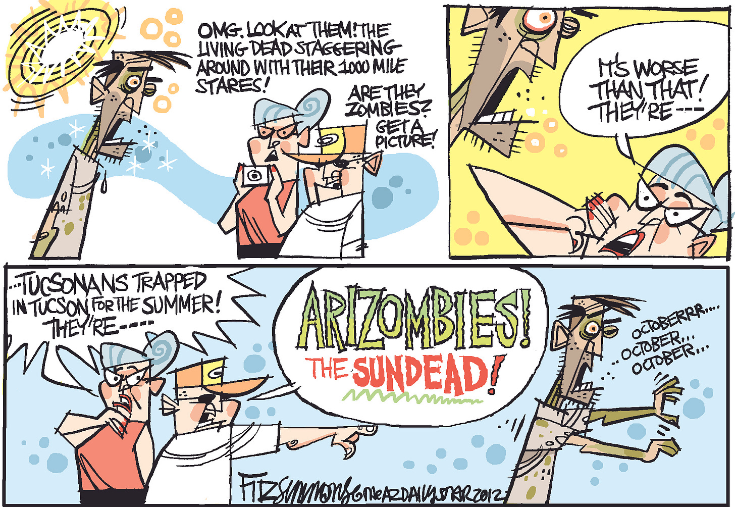 It’s the transition from Zonie to Ari-zombie that’s tough in July. Not all of us can escape the heat. We can’t all afford to flee to the relief of cool mountains or refreshing beaches. We must accept our Ari-zomb-i-tude and and ride those triple digits. Arizombies have 5 distinguishing characteristics.